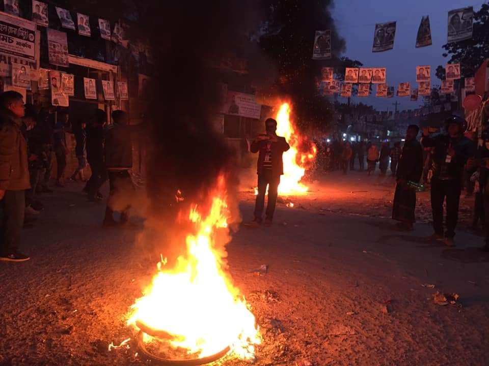বিক্ষোভ মিছিলে দেশীয় অস্ত্রশস্ত্র দিয়ে হামলা চালান নৌকার সমর্থকরা। পরে দুপক্ষ সংঘর্ষে জড়িয়ে পড়েন। এতে আহত হন অন্তত অর্ধশত মানুষ। ভাঙচুর করা হয় দোকানপাট। সংঘর্ষে রাবার বুলেট ও টিয়ারশেল নিক্ষেপ করে পরিস্থিতি নিয়ন্ত্রণে আনে পুলিশ।