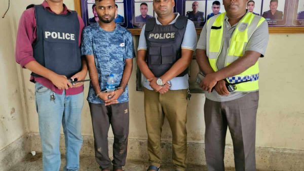 বৃহস্পতিবার (২৮ সেপ্টেম্বর) সকালে মৌলভীবাজার সদর থানার এসআই নাজমুল হোসেন, এসআই বশির আহমেদ এর নেতৃত্বে পুলিশের একটি টিম অভিযান চালিয়ে একাধিক মাদক মামলার আসামি মাদক কারবারি গোলাম সরোয়ারকে গ্রেপ্তার করা হয়। মডেল থানা সুত্রে জানা যায়, মৌলভীবাজার জেলার সদর উপজেলার কাজীরগাঁও এলাকা থেকে ইয়াবা সম্্রাট গোলাম সরোয়ারকে গ্রেপ্তার করা হয়। মাদক সম্্রাট গোলাম সরোয়ার মৌলভীবাজার পৌর এলাকার দরগা মহল্লা এলাকার আব্দুল মুহিতের ছেলে। তার বিরুদ্ধে জিআর ১১৬/২১ (সদর) মামলায় মাদক দ্রব্য নিয়ন্ত্রণ আইনের ৩৬(১) ১০(ক) ধারার অপরাধ সন্দেহাতীত ভাবে প্রমাণিত হওয়ায় বিজ্ঞ আদালত তাকে ৩ বছরের বিনাশ্রম কারাদন্ড ও ১ হাজার টাকা অর্থদন্ড, অনাদায়ে আরও ১ মাসের বিনাশ্রম কারাদন্ড এবং জিআর ৩৬৫/১৯ (সদর) মামলায় মাদক দ্রব্য নিয়ন্ত্রণ আইনের ৩৬(১) সারণীর ১০(ক) ধারায় ৩ বছরের বিনাশ্রম কারাদন্ড ও ১ হাজার টাকা অর্থদন্ড, অনাদায়ে আরও ১ মাসের বিনাশ্রম কারাদন্ড প্রদান করেন।