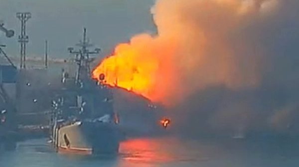 অনলাইন ডেস্ক | কৃষ্ণসাগরে রাশিয়ার একটি যুদ্ধজাহাজে হামলা চালানোর দাবি করেছে ইউক্রেনের সামরিক বাহিনী। তবে, রাশিয়া ক্ষেপণাস্ত্র হামলার কথা স্বীকার না করলেও জাহাজটিতে বিস্ফোরণ ও আগুন ধরে যাওয়ার কথা নিশ্চিত