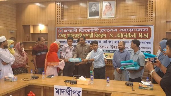 মাদারীপুর প্রতিনিধি।। মাদারীপুরে প্রবাসী ভিআইপি ক্লাবের আয়োজনে,  তারুন্য পরিবারের সার্বিক সহযোগিতায় ডেঙ্গু প্রতিরোধে মশারি বিতরণ ও আলোচনা সভা অনুষ্ঠিত। বুধবার সকালে মাদারীপুর জেলা প্রশাসকের কার্যালয়ে  উক্ত অনুষ্ঠানে প্রধান অতিথি ছিলেন