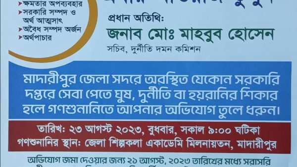 আগামী ২৩ আগস্ট গণশুনানিতে অংশ নিন সোনার বাংলাদেশ গড়ে তুলুন