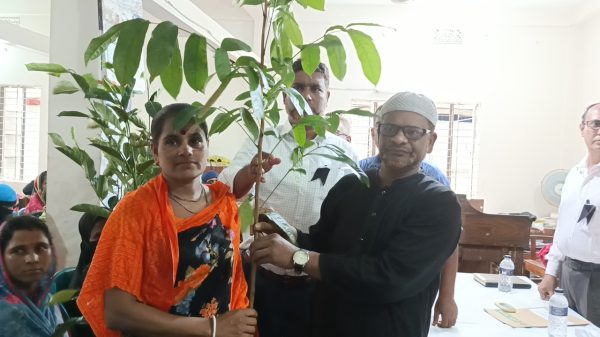 মাদারীপুরে প্রাথমিক বিদ্যালয়ের শিক্ষার্থীদের গাছের চারা বিতরণ করেন অদম্য মাদারীপুর