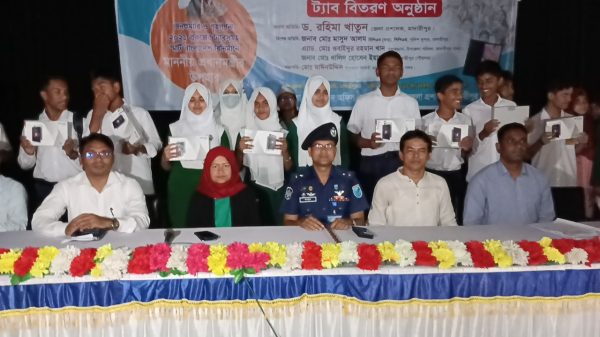 প্রধানমন্ত্রীর উপহার মাদারীপুরে শিক্ষার্থীদের ট্যাব বিতরণ