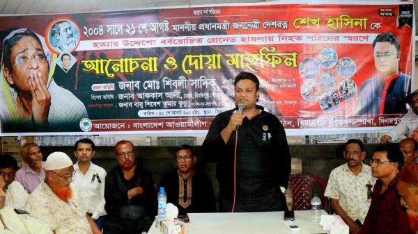 বিরামপুর (দিনাজপুর) সংবাদদাতা।। দিনাজপুরের বিরামপুরে ২০০৪ সালে ২১শে আগস্ট মাননীয় প্রধানমন্ত্রী জননেত্রী দেশরত্ন শেখ হাসিনা কে হত্যার উদ্দেশ্যে বর্বরোচিত গ্রেনেড হামলায় নিহত শহিদের স্বরণে আলোচনা সভা ও দোয়া মাহফিল অনুষ্টিত