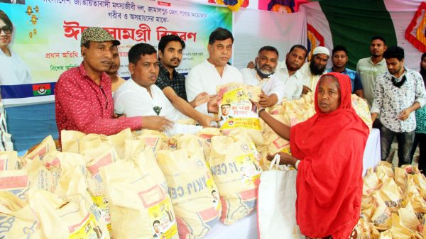 জামালপুর সংবাদদাতা।। বাংলাদেশ জাতীয়তাবাদী মৎস্যজীবী দল জামালপুর জেলা শাখার আয়োজনে অসহায়, দু:স্থদের মাঝে ঈদ সামগ্রী বিতরণ করা হয়েছে। শনিবার বিকেলে পৌরসভার উত্তর দেউরপাড় চন্দ্রা সরকারি প্রাথমিক বিদ্যালয় মাঠে এ ঈদ