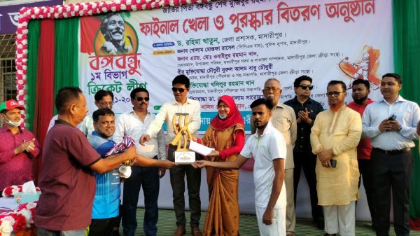 মাদারীপুর প্রতিনিধি।। মাদারীপুরে জাতির পিতা বঙ্গবন্ধু শেখ মুজিবুর রহমানের জন্মশতবার্ষিকী তে বঙ্গবন্ধু ১ম বিভাগ ক্রিকেট লীগের ফাইনাল খেলা ও পুরস্কার বিতরণ করা হয়েছে। বৃহস্পতিবার (১৭ মার্চ) বিকেলে মাদারীপুর আচমত আলী