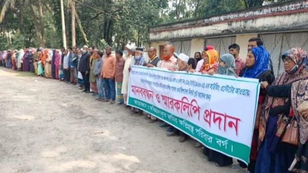 দিনাজপুরে অধিগ্রহণকৃত জমি মূল ক্ষতিগ্রস্থদের নিকট ফিরিয়ে দেয়ার দাবীতে মানববন্ধন ও স্মারকলিপি