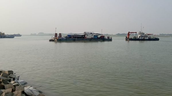 বাংলাবাজার-শিমুলিয়া রুটে নৌযান চলাচল শুরু।। ঘাট এলাকায় আটকে আছে দুই শতাধিক পরিবহন